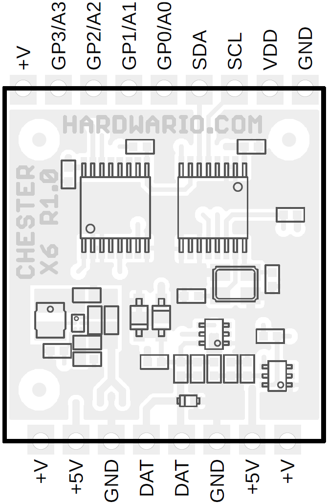 The CHESTER-X6 provides interface for HARDWARIO S-Wire protocol targeting low-power peripherals using 3 wire connection (+5V, GND, DATA). It implements also 5V boost converter and 5V power supply output.